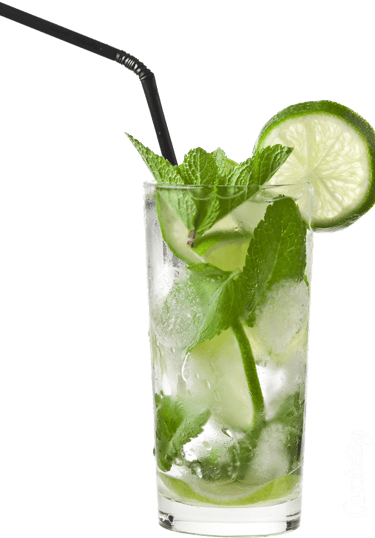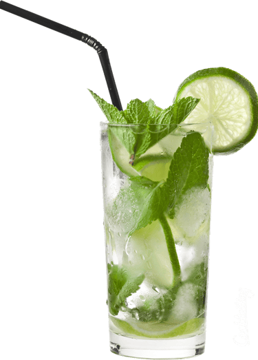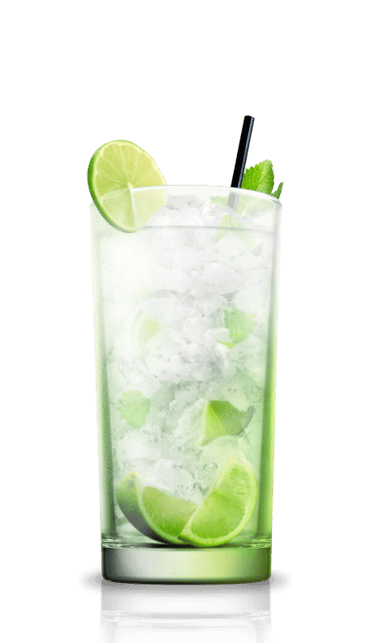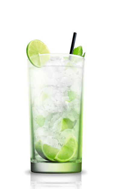 5cl Weißer Rum, Limetten, Brauner Zucker, Soda, Frische Minze