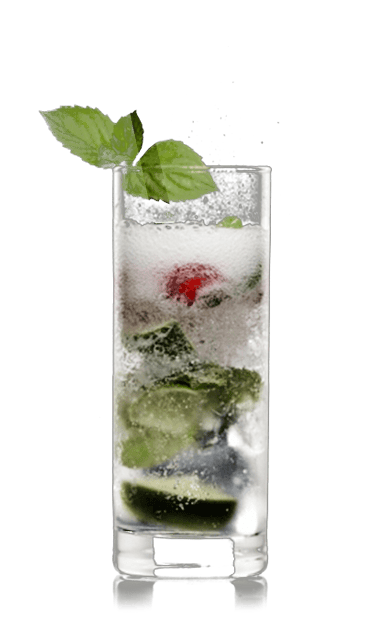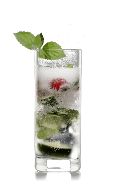 4cl Bacardi Razz, Frische Minze, Lime, Soda, Himbeeren, Limetten
